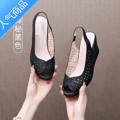 SUNTEK2023夏季新款凉鞋女头层高坡跟防水台软皮软底高跟鞋小码33