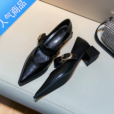 SUNTEK英伦风粗跟玛丽珍鞋女2023新款夏季软皮复古一字扣带高跟鞋