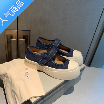 SUNTEK羊皮版~法式玛丽珍女鞋赵露思同款丑萌复古大头小白帆布厚底单鞋