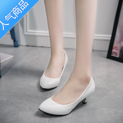 SUNTEKcos万用5cm高跟鞋粉色中低跟鞋皮鞋单鞋职业正装空姐面试黑白