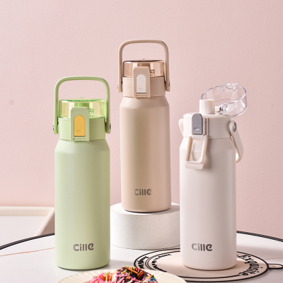 希乐Cille保温杯保冷杯316不锈钢高颜值男女士学生健身运动双饮弹跳水杯子户外水具户外水壶/水瓶/水杯