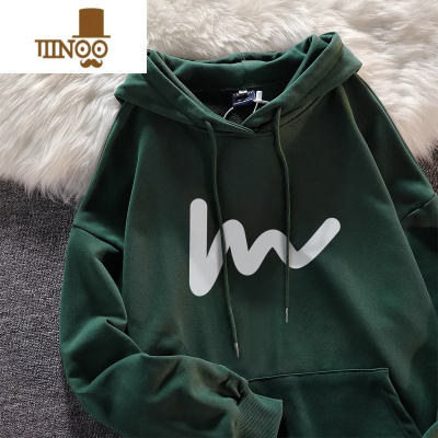 YANXU墨绿色连帽卫衣男春季情侣装2023新款薄款宽松日系款男生外套