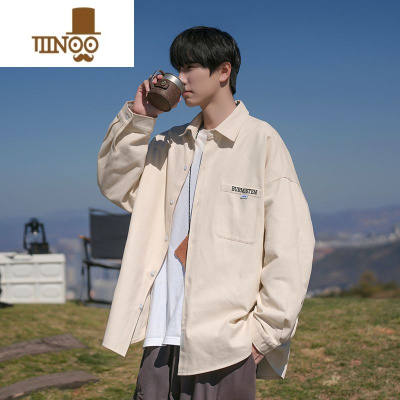 YANXU日系复古长袖衬衫男春季宽松男生ins百搭杏色衬衣帅气百搭薄外套