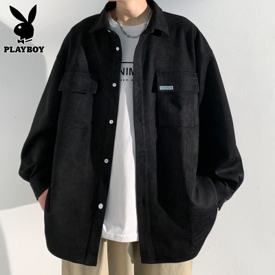 花花公子长袖衬衫男士春秋款ins潮牌男生痞帅春季休闲黑色外套男