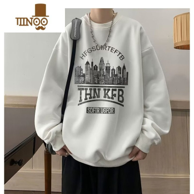 YANXU美式复古圆领卫衣男生秋季潮牌无帽上衣oversize宽松百搭款
