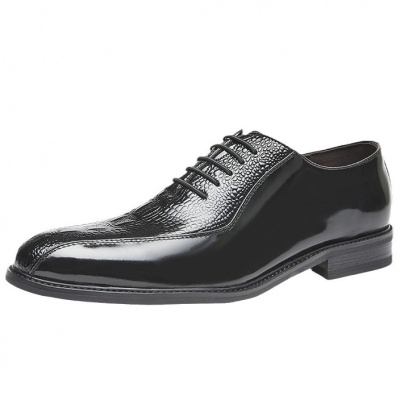 头层牛皮新款尖头鳄鱼纹压花商务正装皮鞋男系带牛津鞋婚礼新郎鞋