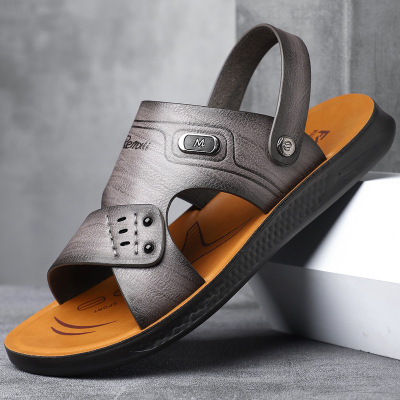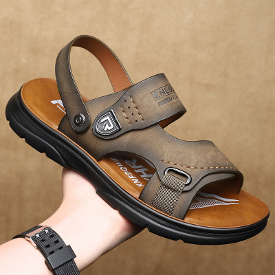凉鞋男士新款户外休闲沙滩鞋两用外穿拖鞋防滑耐磨皮凉鞋
