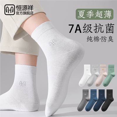 恒源祥袜子男超薄纯棉夏季防臭抗菌男士袜子夏薄款无骨吸汗中筒袜