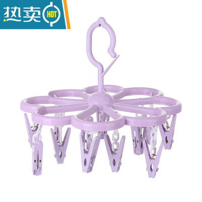 敬平多功能衣架家用折叠晒袜子器婴儿宝宝晾衣夹袜子架多夹子内衣架 小号紫色12夹 1个