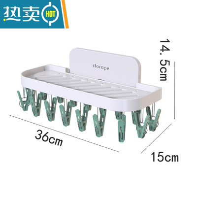 敬平折叠衣架袜子内衣晾晒夹子多功能壁挂免打孔衣服架浴室塑料晾衣夹 绿色