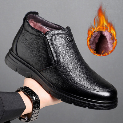 头层牛皮羊毛雪地棉鞋男鞋一脚蹬冬季加绒高帮皮鞋保暖爸冬鞋真皮