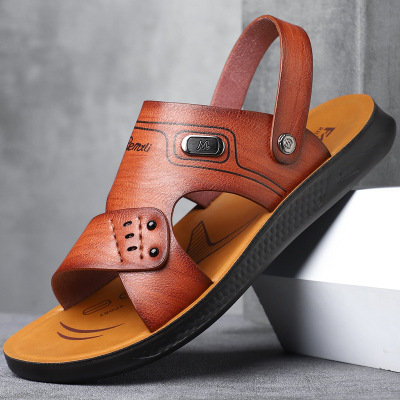 凉鞋男夏季2025真皮休闲沙滩鞋男士外穿中老年两用拖鞋子男防滑鞋
