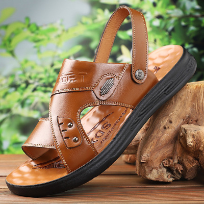男士凉鞋潮款2025新款夏季头层牛皮沙滩鞋男真皮凉拖鞋两用可开车
