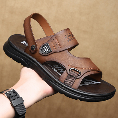 2025男士凉鞋露趾沙滩鞋男夏季防滑两用牛皮凉拖越南潮流拖鞋