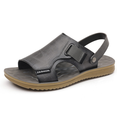 男士凉鞋2024夏季休闲凉拖鞋男软皮外穿防滑中老年爸爸沙滩鞋厂家