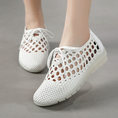 编织女妈妈镂空洞洞凉鞋女平底透气防滑女鞋休闲复古单鞋夏季