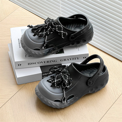 SUNTEKeva洞洞鞋女款夏季外穿凉鞋2023新款防滑踩屎感厚底黑色增高拖鞋