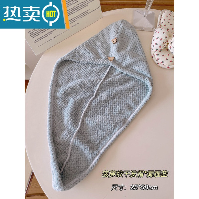 敬平可爱干发帽吸水速干女浴帽洗头帽子2021新款包头巾擦头发毛巾 菠萝纹干发帽*雾霾蓝