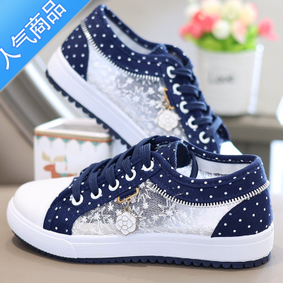 SUNTEK2022新款镂空初中学生帆布鞋女透气网面运动鞋百搭软底休闲板鞋潮