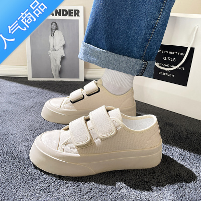 SUNTEK魔术贴小白鞋女夏季2023新款厚底帆布大头面包鞋休闲运动板鞋透气