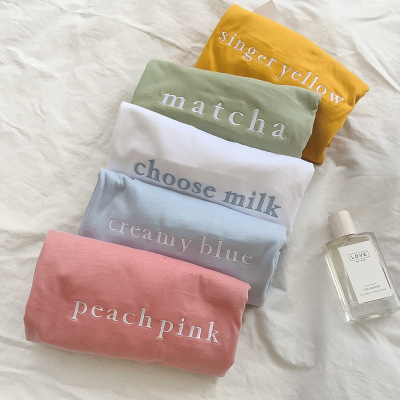 字母刺绣宽松短袖T恤女春夏韩国女装新款女士上衣打底衫女装