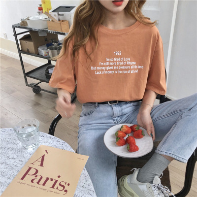 韩国女装新款休闲字母印花短袖T恤女学生打底衫上衣女装