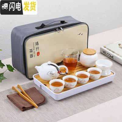 三维工匠白瓷旅行茶具套装便携包日式户外简约迷你家用外出功夫泡茶壶茶杯 新12件知足常乐西施壶(白瓷茶海
