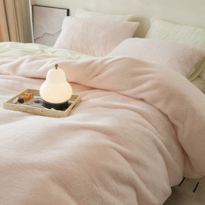 冬季A类兔毛绒床上四件套牛奶绒加绒被套加厚保暖珊瑚法兰绒床单4