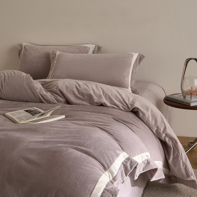 A类纯色简约牛奶绒床上四件套加厚加绒高克重兔毛绒婴儿绒床套件