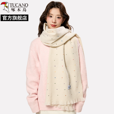 啄木鸟2025新款彩虹点点米色围巾女秋冬季氛围感时尚百搭围脖学生