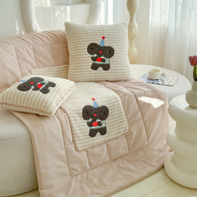 秋冬暖茸茸牛奶绒抱枕被立体绒感刺绣羊羔绒萌宠靠垫被
