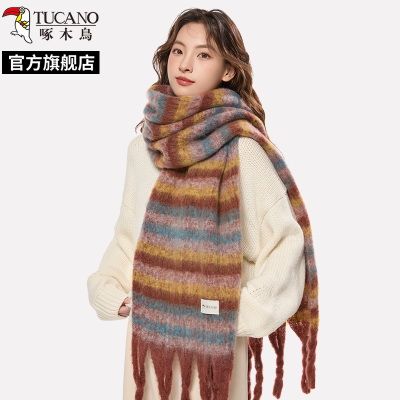 啄木鸟条纹围巾秋冬季女2024新款高级感美拉德复古加厚保暖围脖男