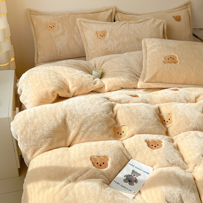 牛奶绒四件套新款秋冬加厚被套床单珊瑚绒床笠加绒床品氛围感