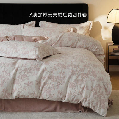 云芙绒提花牛奶绒四件套舒适保暖加厚珊瑚绒床品冬季床单床笠