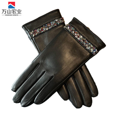 万山宏业 女士触屏加绒羊皮手套盒装WD12T/副
