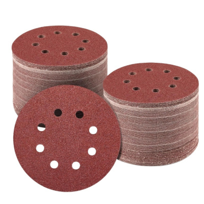 铁洋 背绒砂纸片 植绒砂纸片 5寸125mm8孔40目红砂 片