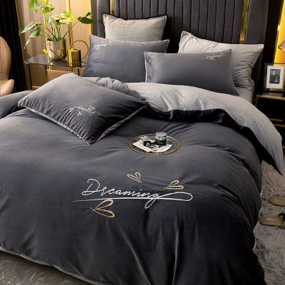 双面加厚绒刺绣四件套法兰绒被套冬季珊瑚绒三件套床单
