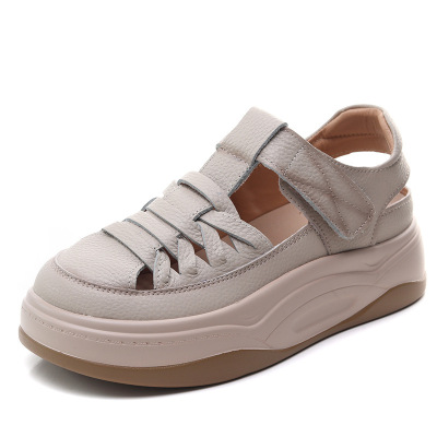 头层牛皮厚底罗马凉鞋女2025夏季新款镂空透气舒适外穿软底凉鞋