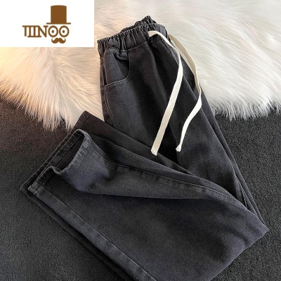 YANXU烟灰色牛仔裤男士宽松九分休闲修身弹力小脚长裤子潮牌男生款秋季