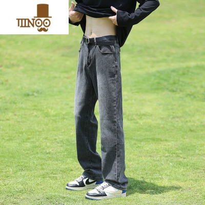 YANXU烟灰色牛仔裤男秋季复古水洗宽松直筒裤美式痞帅休闲裤子青少年
