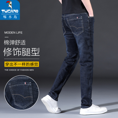啄木鸟夏季薄款牛仔裤男潮牌宽松直筒弹力烟灰色休闲修身耐磨长裤