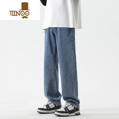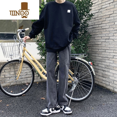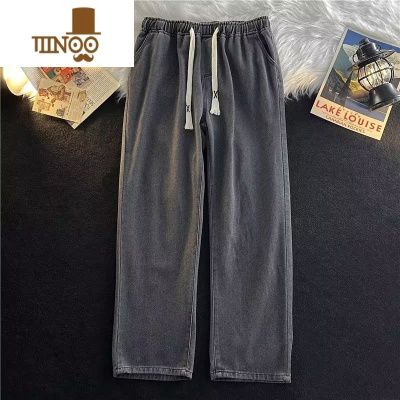 YANXU烟灰色牛仔裤男秋季宽松直筒阔腿长裤美式复古痞帅休闲裤子青少年