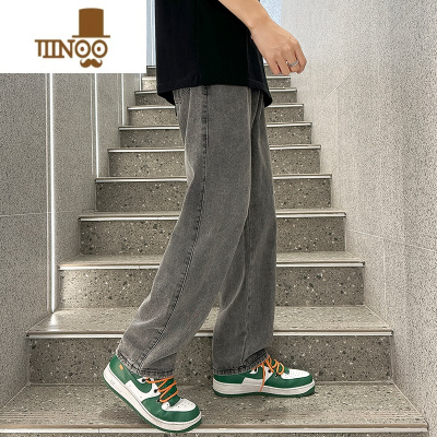 YANXUHCKU烟灰色牛仔裤男款港风chic宽松直筒裤子高街ins百搭夏季薄款