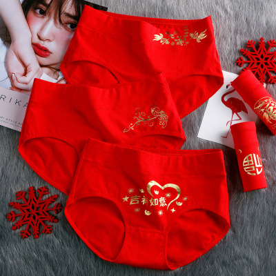 本命年大红内裤 印花大红高腰 内裤收腹内裤纯棉盒装