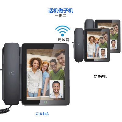 铱方C18黑色一拖二子母机 安卓多媒体智能可视电话机 网络 视频 录音电话机座机 办公家用黑名单电话 IP电话