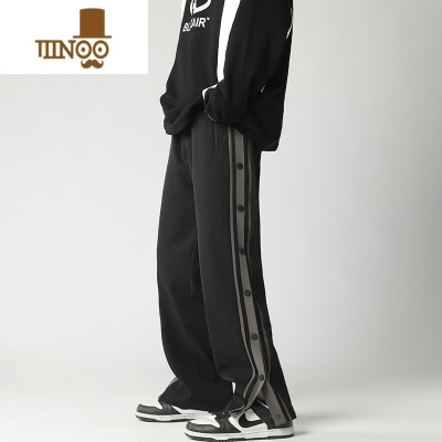 YANXU夏季美式vibe排扣裤男篮球运动直筒宽松高街阔腿裤拖地休闲长裤