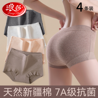 浪莎平角内裤女士纯棉7a级抗菌高腰收腹2025年春季新款全棉四角短裤头