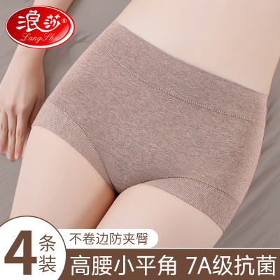 浪莎莫代尔高腰内裤女生四角收腹中腰100%正品抗菌冰丝女士平角短裤头