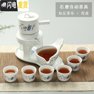 三维工匠石磨半全自动茶具 家用陶瓷功夫茶具套装创意懒人茶壶防烫泡茶器 (石磨)自动茶具—知足茶乐+陶瓷托盘