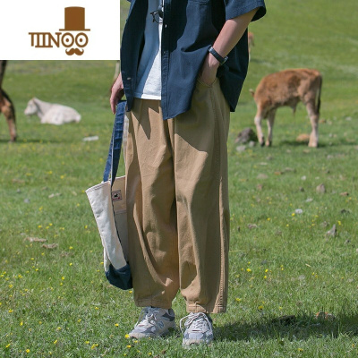 YANXU日系cityboy工装阔腿裤子男户外直筒慵懒风oversize卡其色灯笼裤
